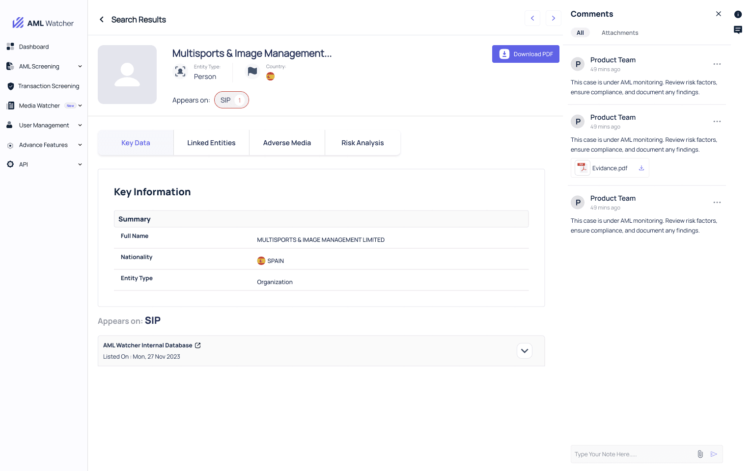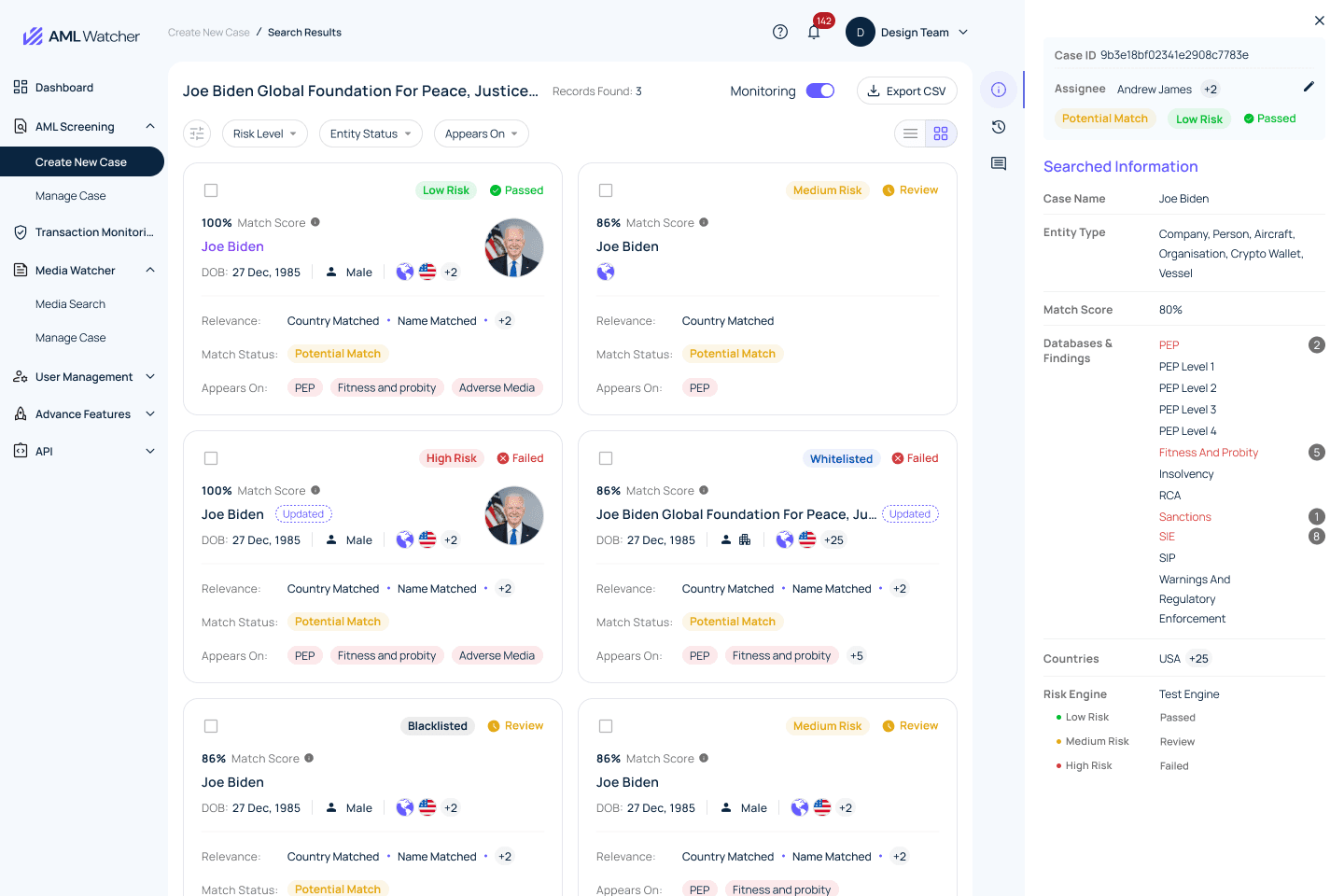 Exportable, audit-ready reports aligned with global AML standards, supporting compliance audits and documentation.
