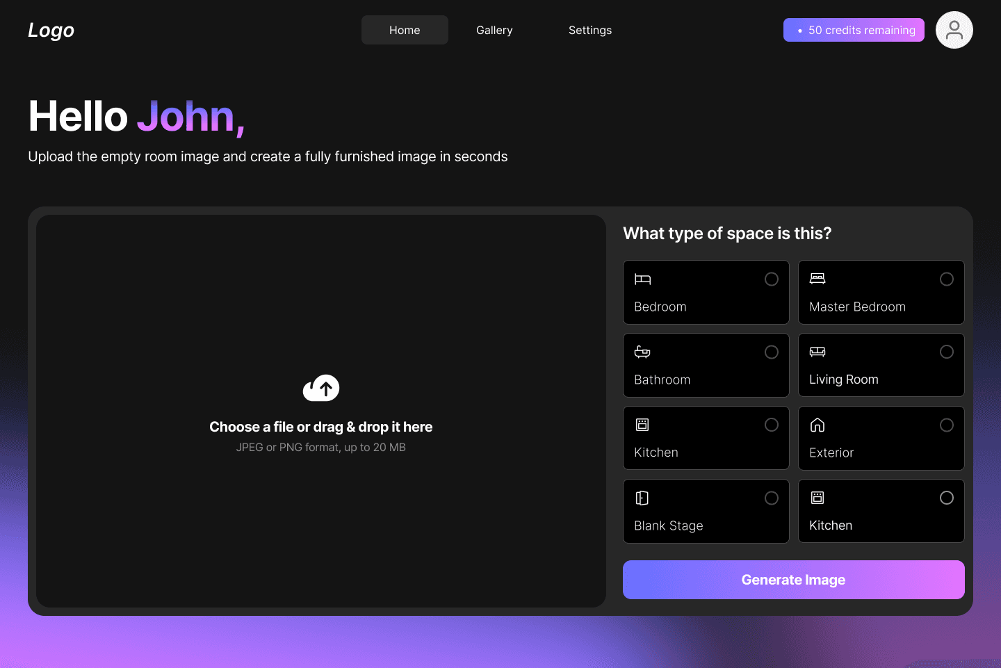 Users needed a fast and intuitive way to generate market-ready staged visuals without technical complexity.